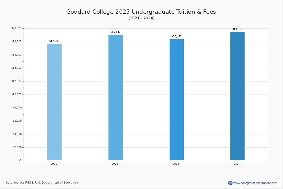 The 2024 tuition & fees of goddard college (goddard) is $19,568 for prospective students and the 2024 graduate school tuition & fees is $23,898.